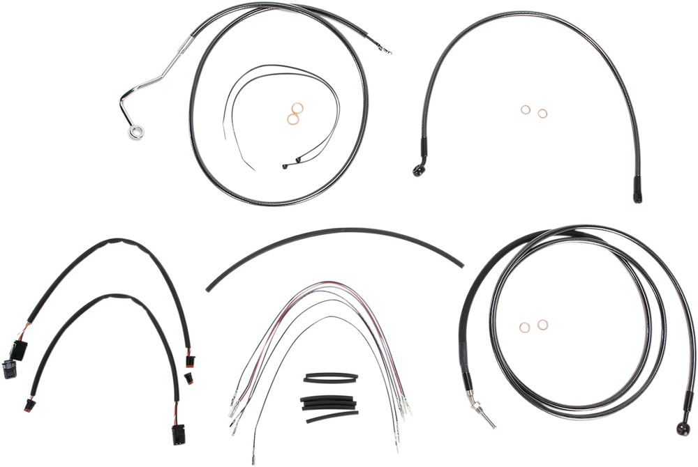- Kit includes throttle and idle cables of throttle-by-wire extensions, clutch cable or hydraulic clutch line, brake lines, copper crush washers, hardware, and any necessary switch wiring of turn signal extension, unless otherwise noted