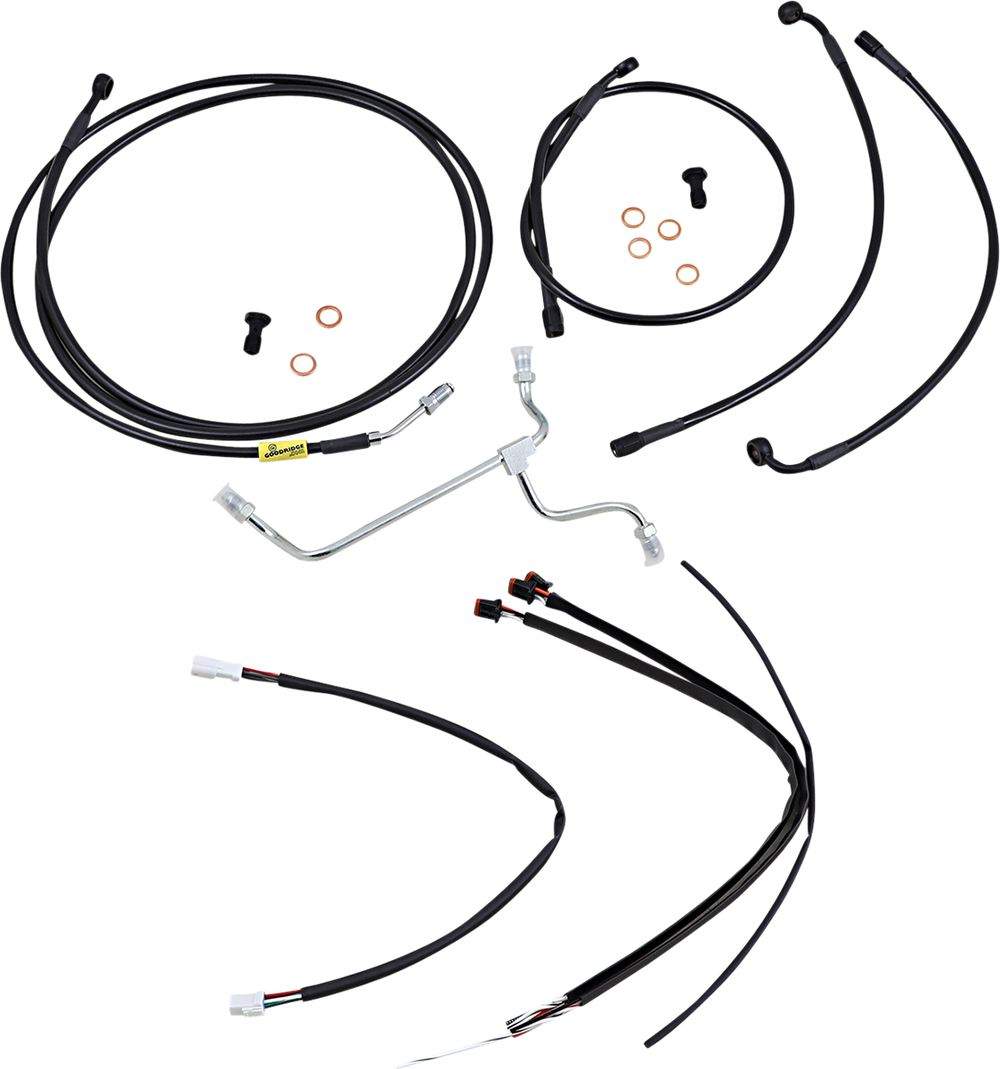 • Kit includes extended brake line (unless noted), extended clutch cable/clutch line, extended throttle/idle cables as required and all necessary wiring