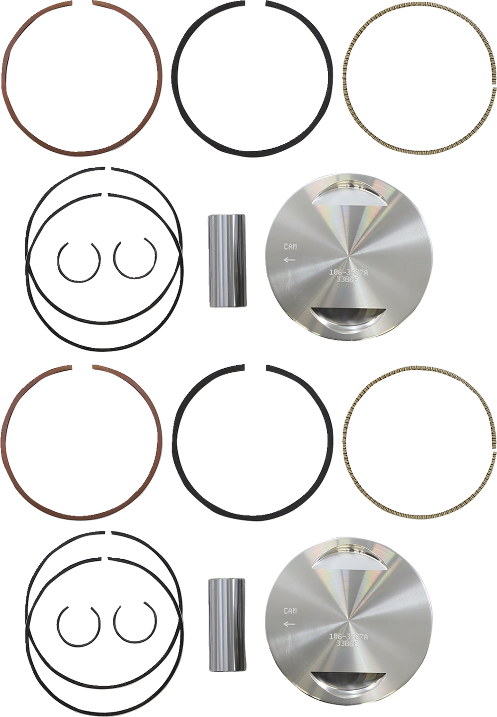 Kolbensätze umfassen geschmiedete Kolben (sofern nicht anders angegeben), Ringe, Kolbenbolzen und Clips für einen vollständigen Motoraustausch. Die Ringe werden als Sets für zwei Kolben geliefert. Hergestellt in den USA.
