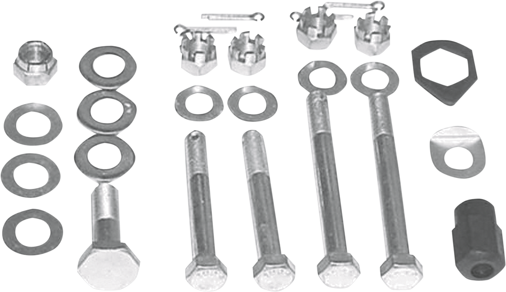 - Kit Includes top motor mount bolt, two 3/8"-24 x 31/4" bolts, two front engine mounting bolts, three 3/8" x 7/64" washers, three castle nuts, three cotter keys, one motor bolt nut, one 29/64" x 3/32" washer, one 7/16" x 1/8" washer, one 7/16" x 1/8" washer, and one locknut