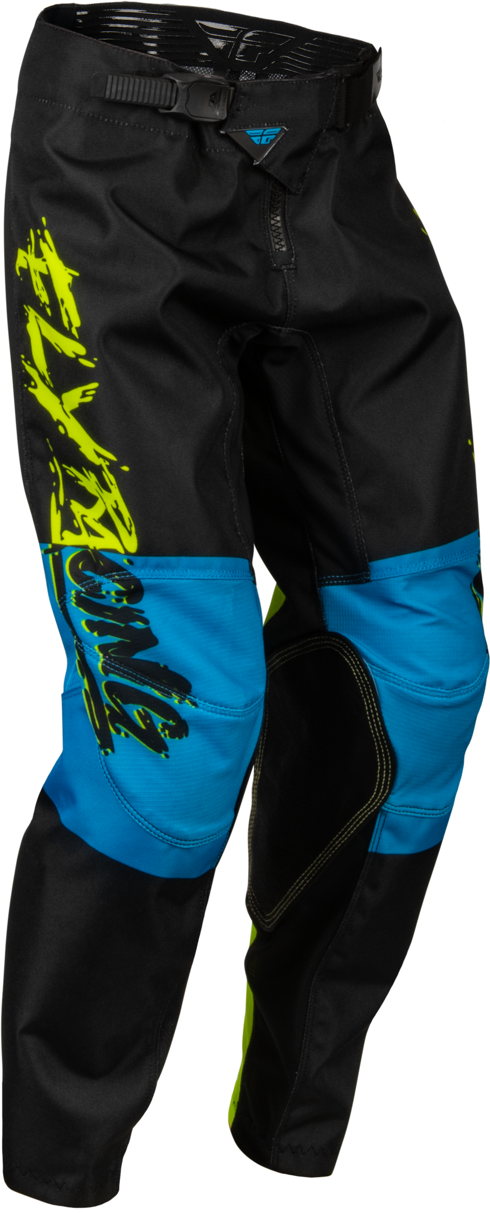 FLY RACING Youth Kinetic Khaos Pants Hi-Vis/Black/Cyan Sz 26 376-43226