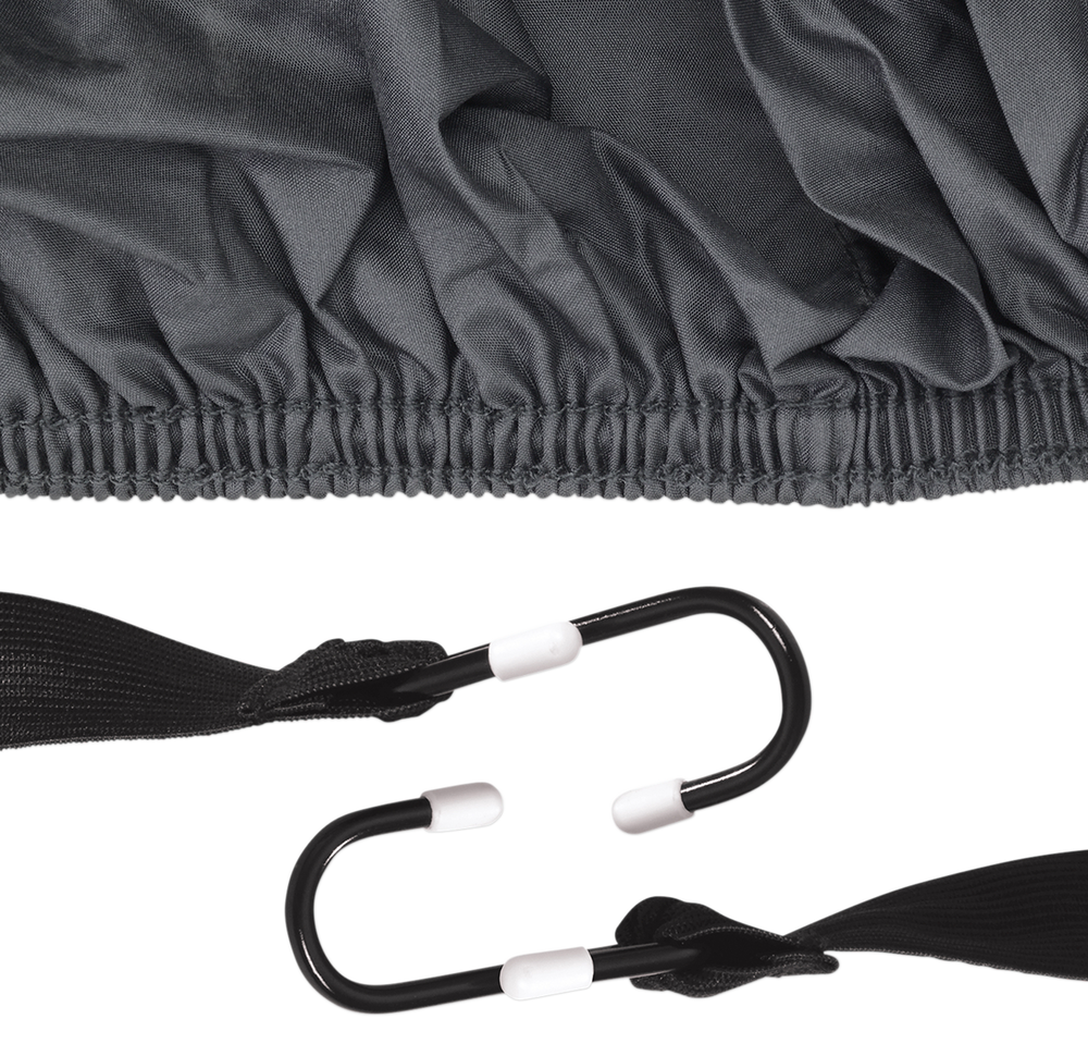 - Sewn in elastic hem with 4 elastic straps with hooks to help secure from blowing wind.