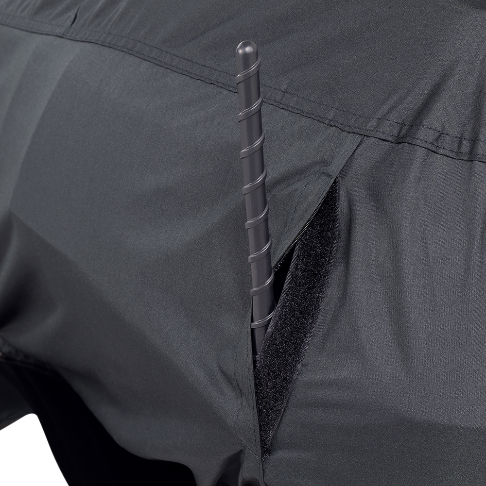 - Left and right antenna access points with hook and loop sealing.