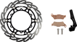 - Kit Includes flame brake rotor, racing compound brake pads, and caliper relocation adapter