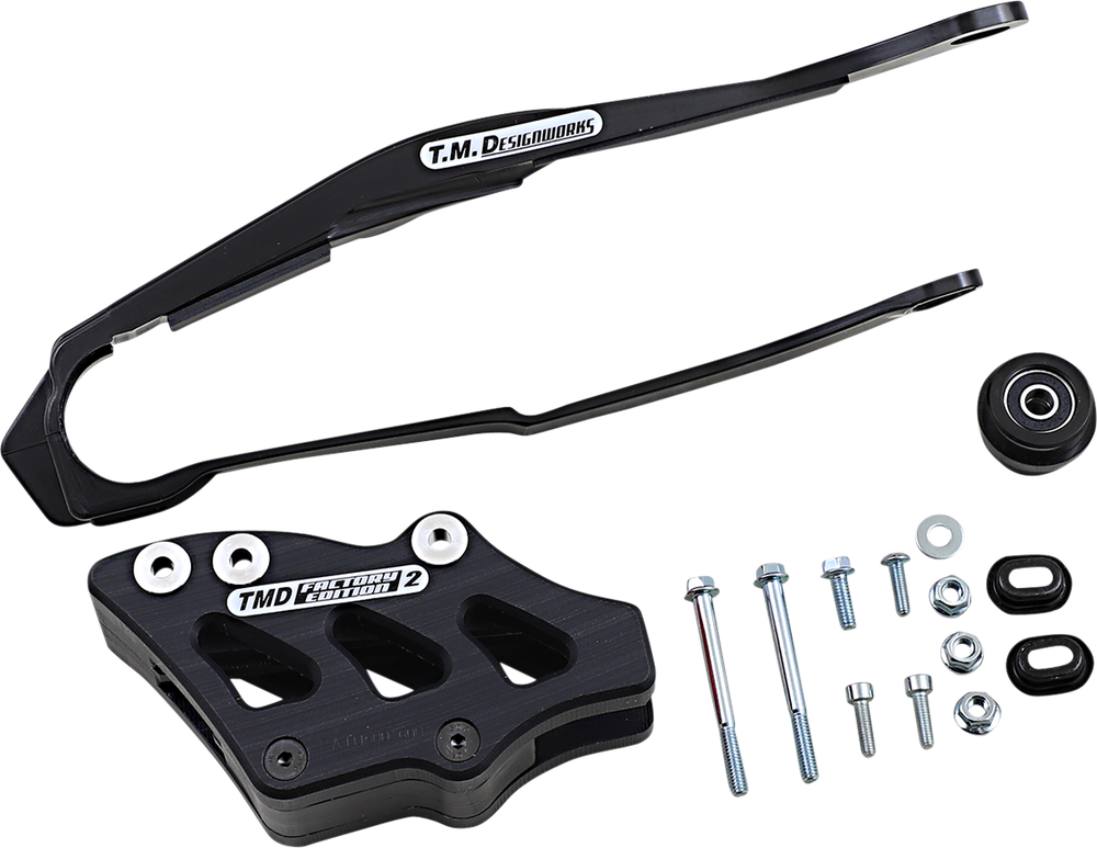 - The kit includes dirt cross chain slider, lower powerlip roller or frame pad, and rear chain guide (either factory edition #1 or #2)