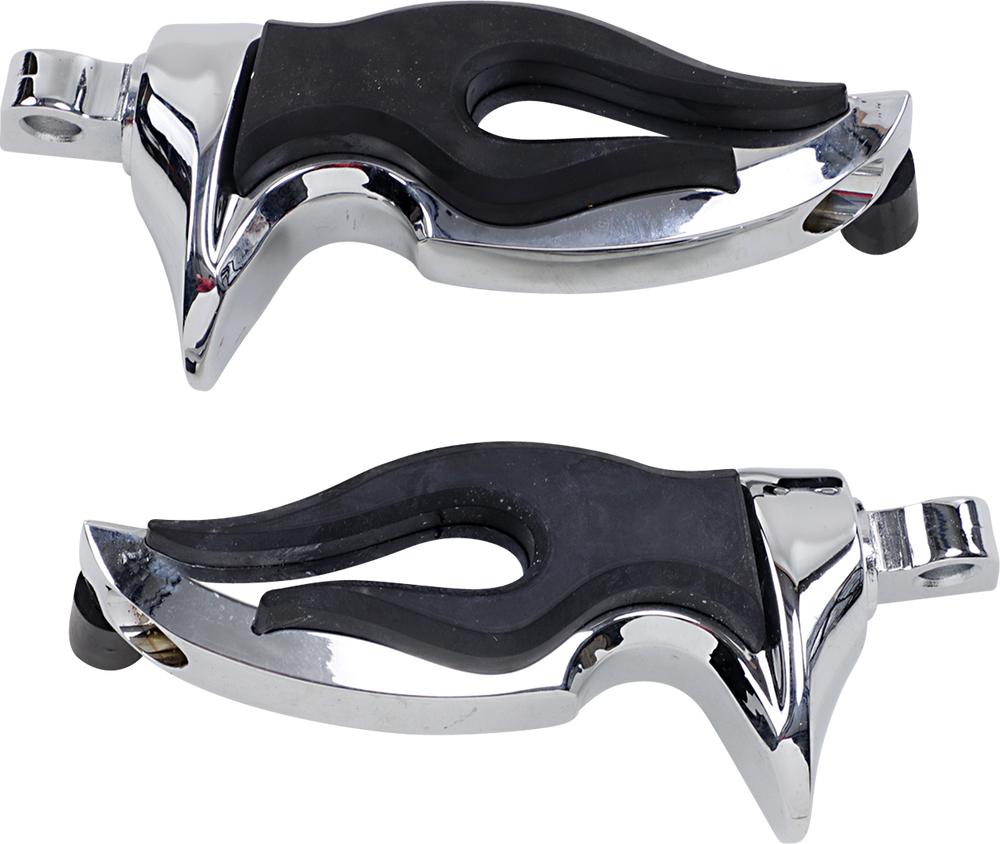 - Chrome bodies with rubber flame inserts provide comfort and help isolate the foot from vibrations