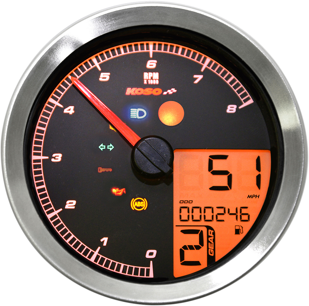 KOSO NORTH AMERICA Multi-Functional Meter - Silver BA051300 is backordered and will ship as soon as it is back in stock.