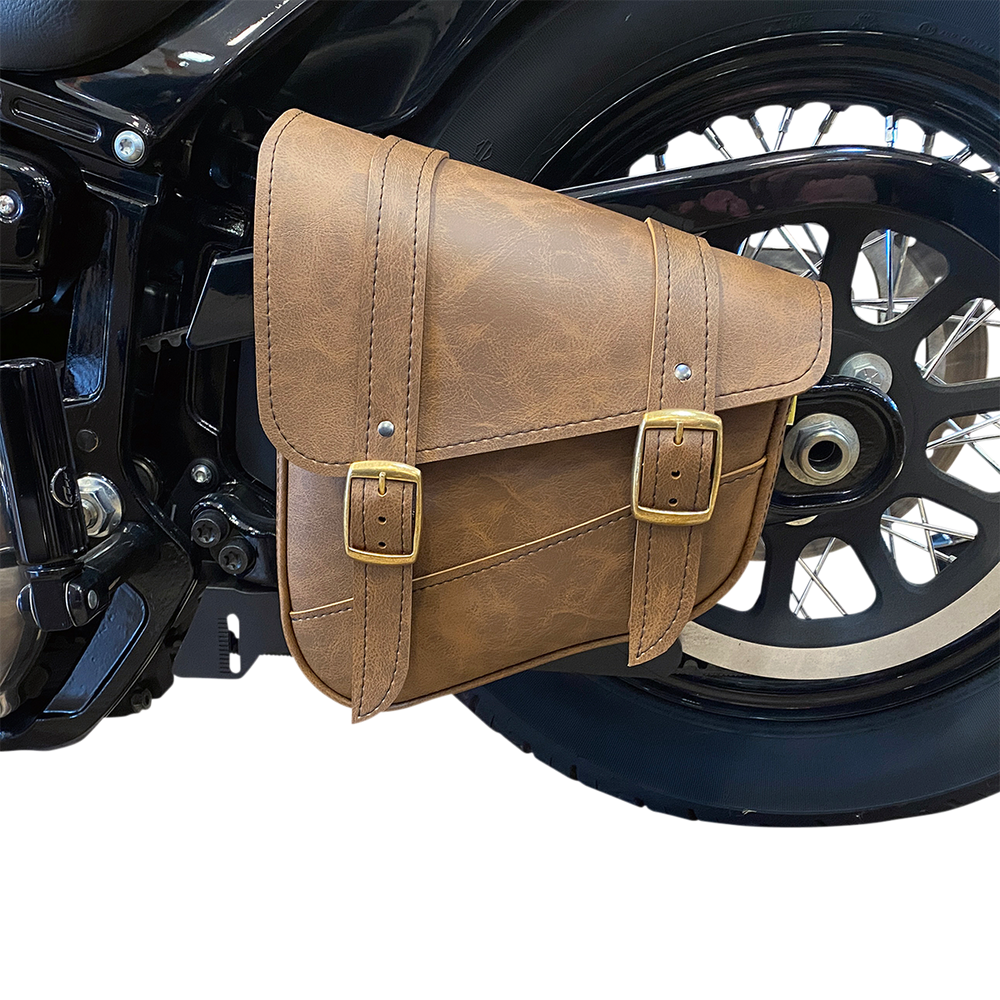 • Durable swingarm bag construction uses synthetic leather and brass buckles with quick disconnect buckles hidden under the straps