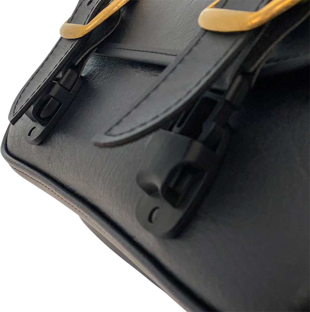 - Made of black synthetic leather