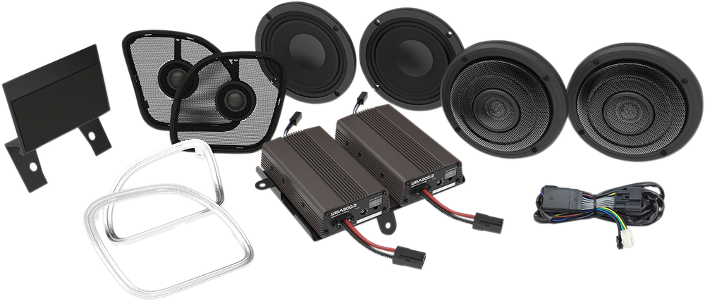 - System is expandable to easily add additional amplifier for fairing lowers or saddlebag lids
