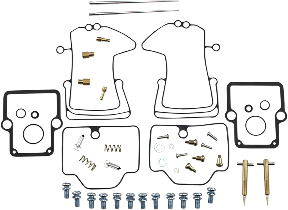 - Kit includes all necessary O-rings, gaskets, jets, needle, mixture screw, float bowl screws, float valve needle and seat (needle jet and other pressed-in jets are not included in kit)