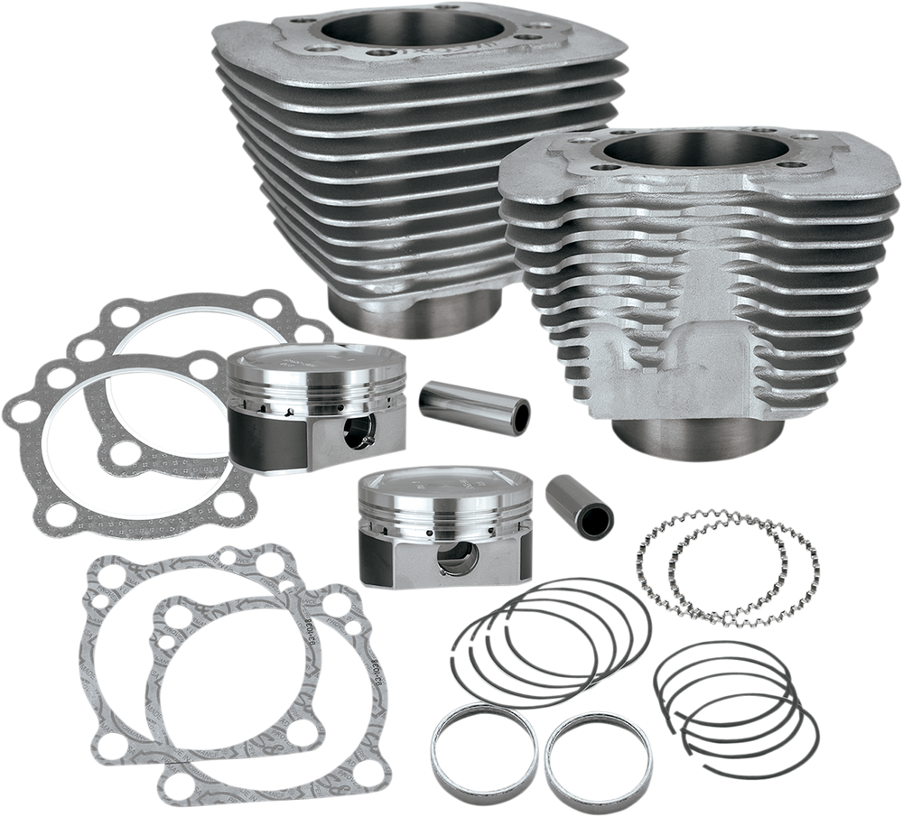 Increase displacement from 883cc to 1200cc Saves time because pistons are already fit to the cylinders - ready to assemble out of the box Cylinders are constructed from premium aluminum castings with cast-in iron liners No machining No re-balancing of 883cc flywheels No cylinder head modifications Big bore 3-1/2" cylinders 9.4:1 with stock 883cc heads Kits include cylinders, pistons, rings and gaskets (head, base and exhaust) Made in the U.S.A.