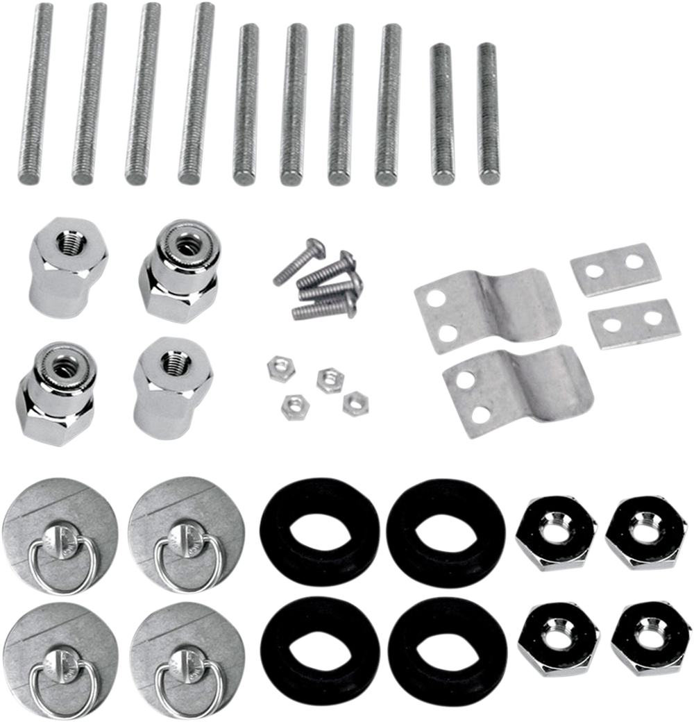 - Each kit includes four docking posts with fasteners, spacers, saddlebag grommets, support clips, nuts/bolts/fastener and instructions