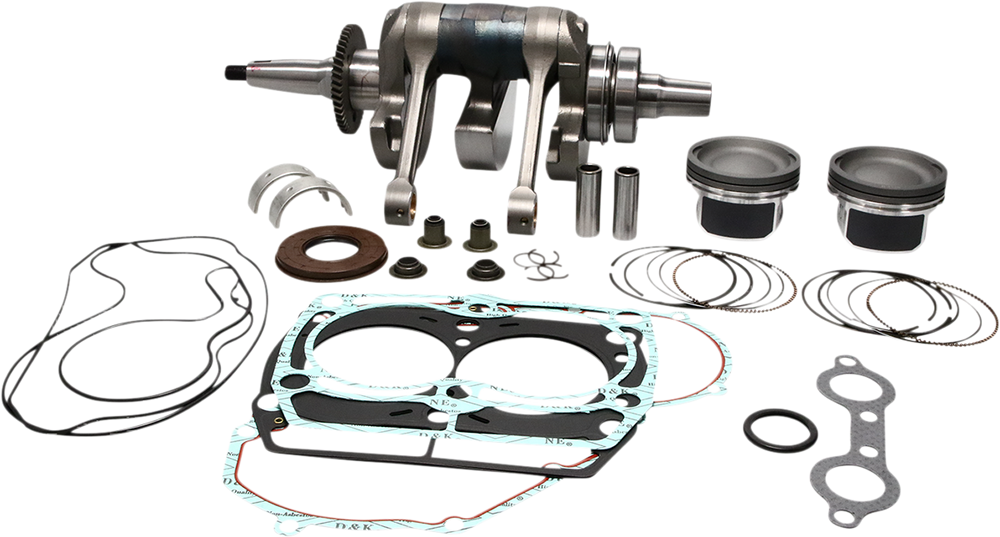 • Complete rotating and reciprocating rebuild kit including crankshaft assembly, main bearings and seals, pistons and components, and a complete engine gasket kit