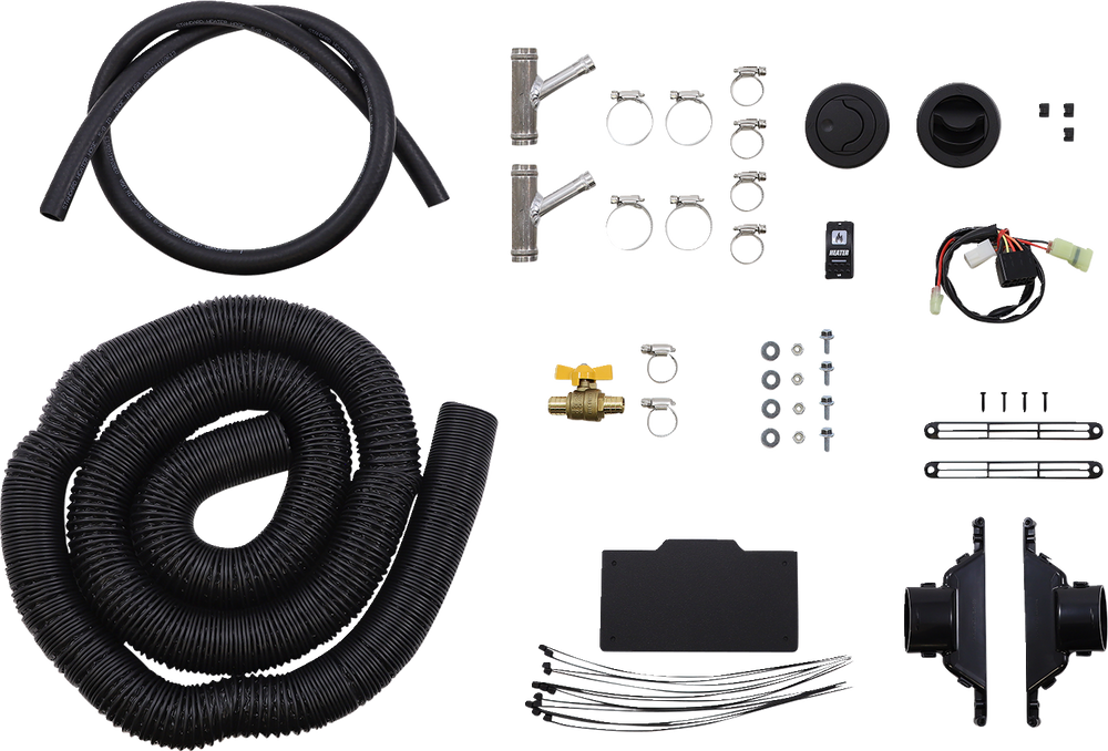 - 12 volt universal cab heater kit for UTVs with 1" (2.54 cm) and 3/4" (1.9 cm) radiator hoses
