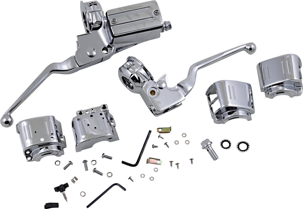 - Each Complete Kit includes clutch lever assembly with clamp half, a master cylinder assembly with clamp half, and the right and left switch housings