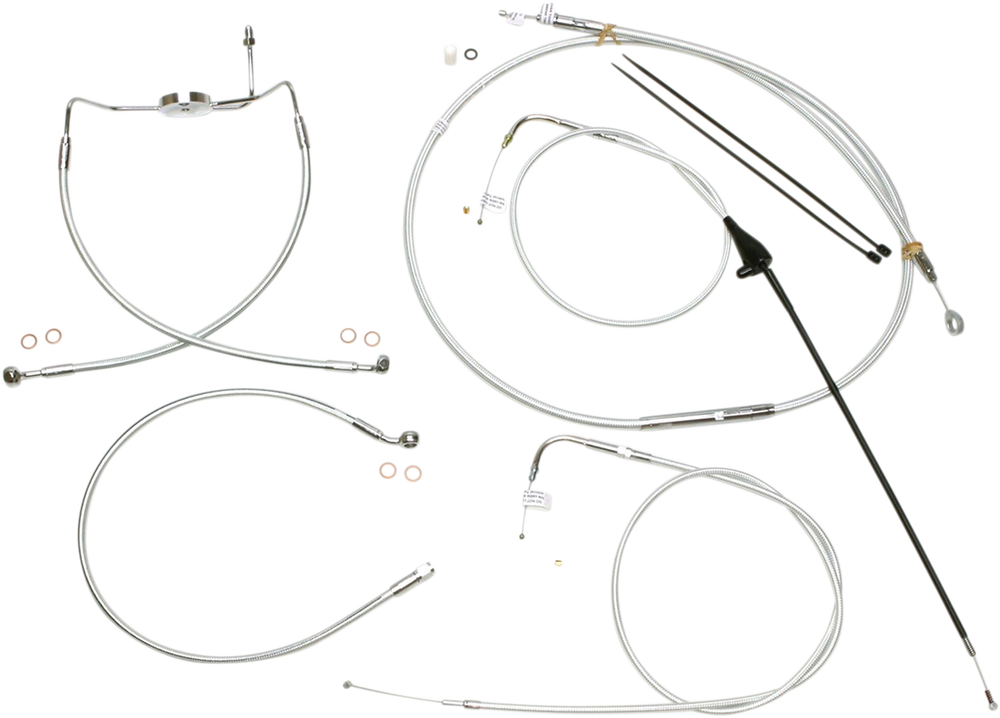 - Kit includes throttle and idle cables of throttle-by-wire extensions, clutch cable or hydraulic clutch line, brake lines, copper crush washers, hardware, and any necessary switch wiring of turn signal extension