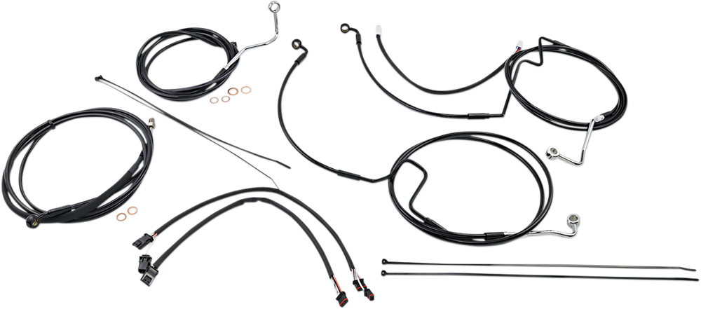 • Kit includes throttle and idle cables or throttle-by-wire extensions, clutch cable or XR hydraulic clutch line, XR brake lines, copper crush washers, hardware, turn signal and switch wiring extensions