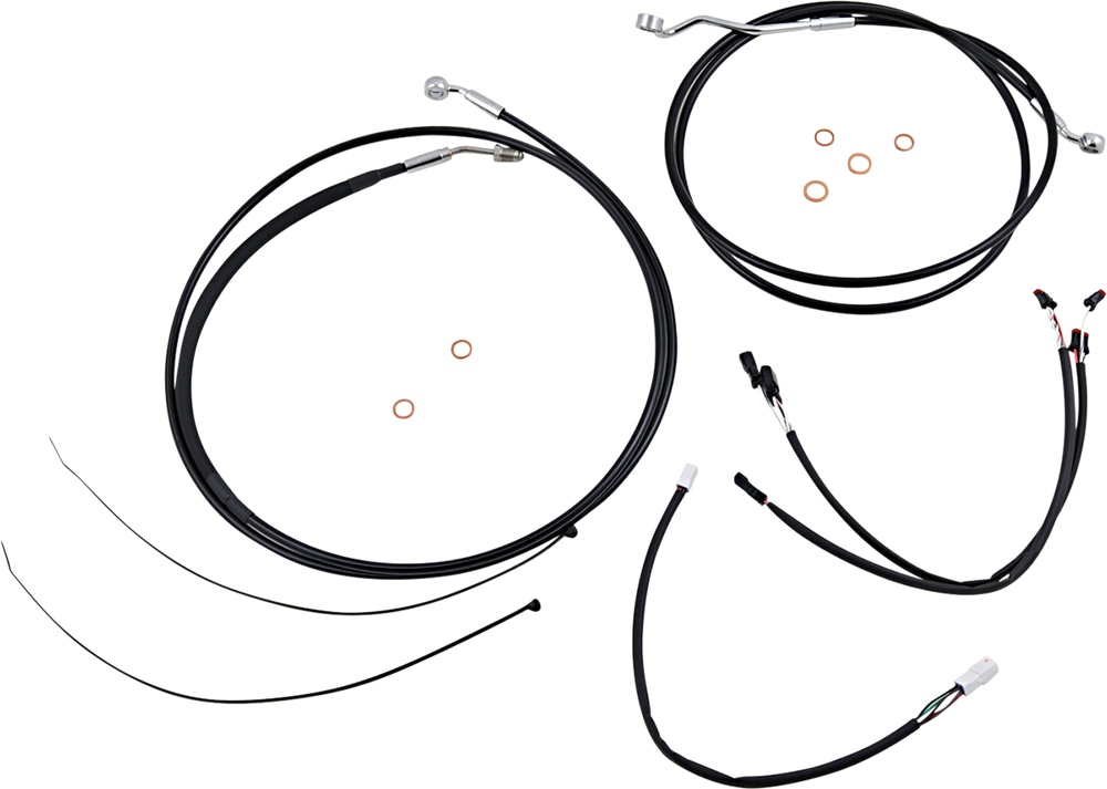 - Kit includes throttle and idle cables or throttle-by-wire extensions, clutch cable or XR hydraulic clutch line, XR brake lines, copper crush washers, hardware, turn signal and switch wiring extensions