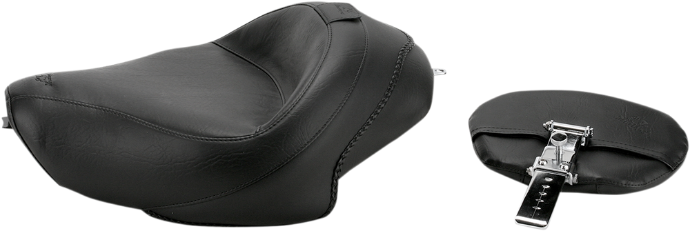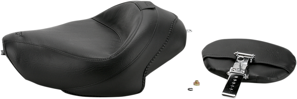 MUSTANG Wide Solo Seat - With Backrest - Vintage - Black - Smooth - XL '04-'21 79429 is backordered and will ship as soon as it is back in stock.