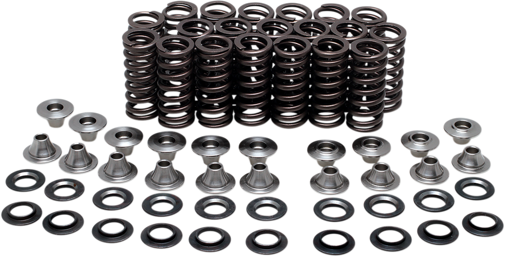 - Kit features lightweight, high-strength CrSi valve springs, H.T. steel base washers and titanium spring retainers