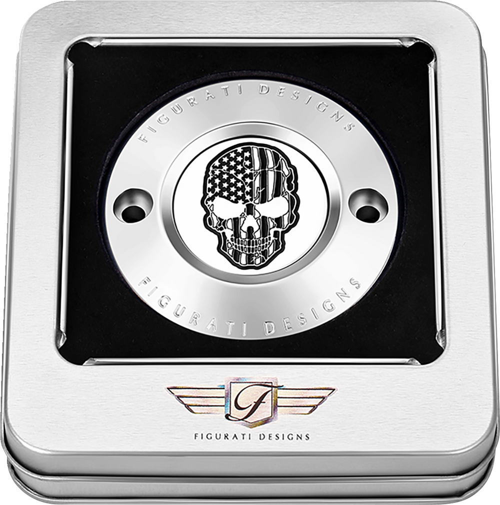 FIGURATI DESIGNS Timing Cover - 2 Hole - Skull - Contrast Cut - Stainless Steel FD27-TC-2H-SS