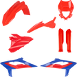 - Full kit includes front fender, front number plate, lower fork cover set, radiator shrouds, side panels, and rear fender