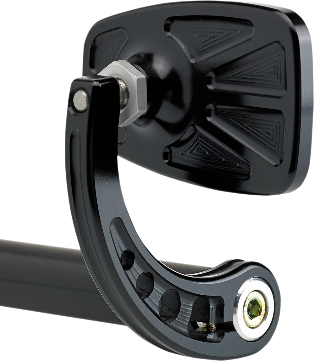 - Features a convex mirror glass