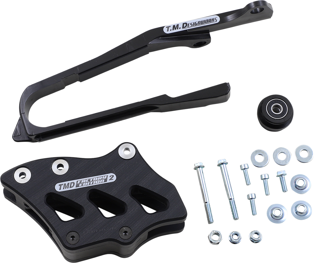 - The kit includes dirt cross chain slider, lower powerlip roller or frame pad, and rear chain guide (either factory edition #1 or #2)