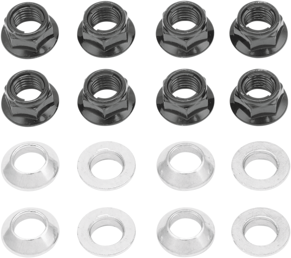 - Designed to eliminate the troublesome problem of lugs that work their way loose, these kits include eight metal locking flange nuts and eight tapered adapter bushings