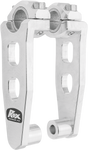- Risers are held by the original 7/8" clamps and reclamp the handlebars 2", 3-1/2" or 5" higher (depending on size purchased) with pivoting fore and aft adjustment
