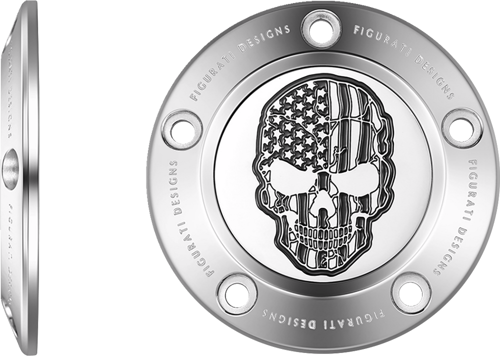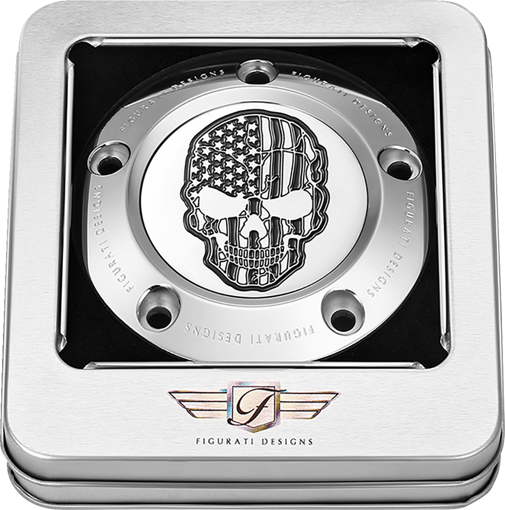 FIGURATI DESIGNS Timing Cover - 5 Hole - Skull - Contrast Cut - Stainless Steel FD27-TC-5H-SS