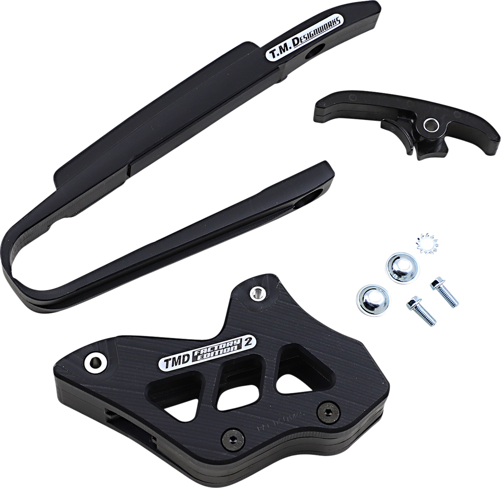 - The kit includes dirt cross chain slider, lower powerlip roller or frame pad, and rear chain guide (either factory edition #1 or #2)