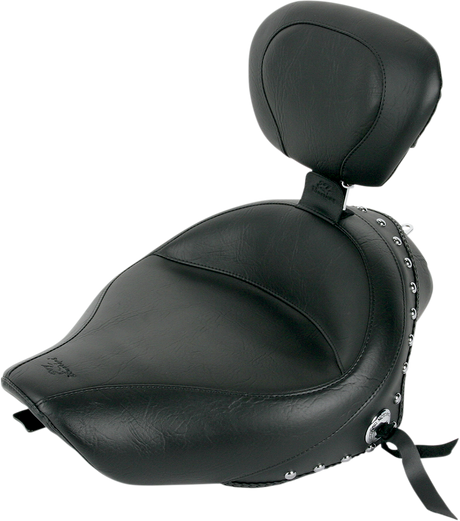MUSTANG Wide Solo Seat - With Backrest - Black - Studded W/Concho - Road King '97-'07 79102