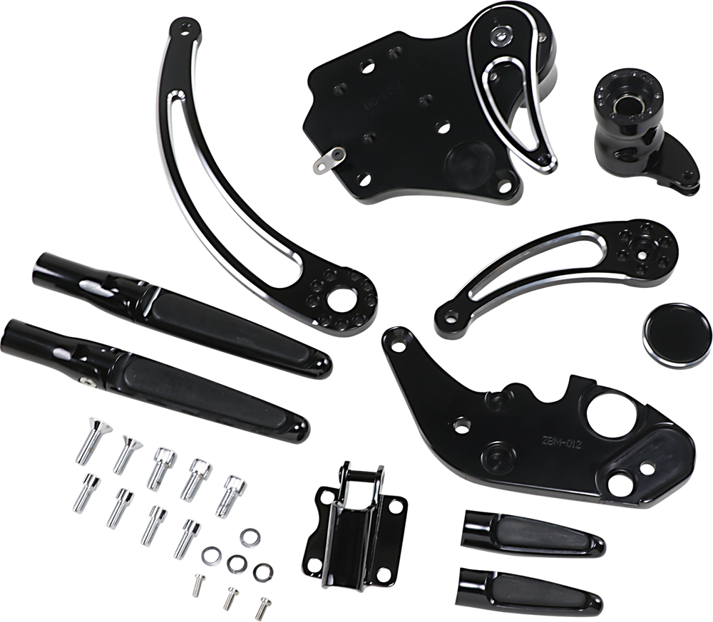 HAWG HALTERS Forward Control - '14+ FLH - Black Anodized - Extended - Folding Rubber Inlay Pegs - Slotted Lever FCK-F14AE-FR-SE