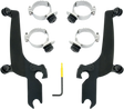 - Kits are a combination of CNC-machined aluminum plates and anchors, stainless steel hardware, gray polymer bushings and glass-filled nylon latches or "Night Shades" black version which, is a gradient black windshield with black E-coated stainless steel straps, fittings and hardware for a black-on-black sinister look
