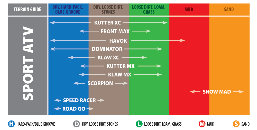 - Rear specific tread pattern designed for ATV/utility turf/hard surface applications