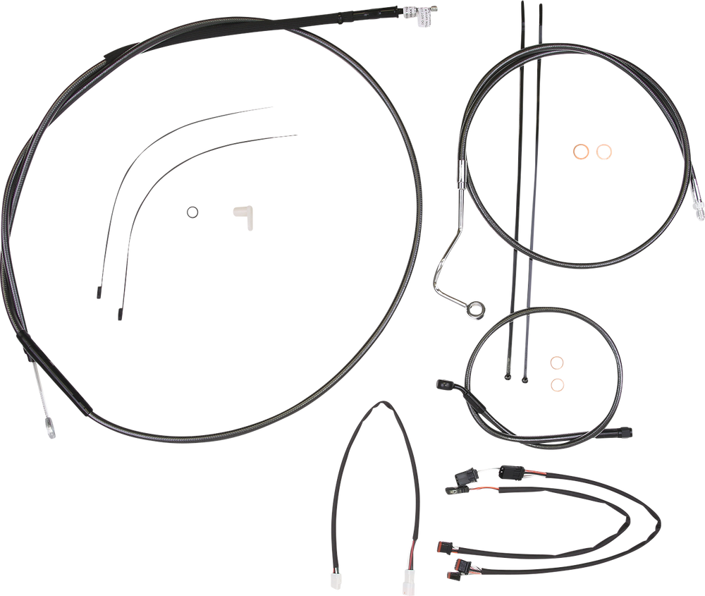 - Kit includes throttle and idle cables of throttle-by-wire extensions, clutch cable or hydraulic clutch line, brake lines, copper crush washers, hardware, and any necessary switch wiring of turn signal extension