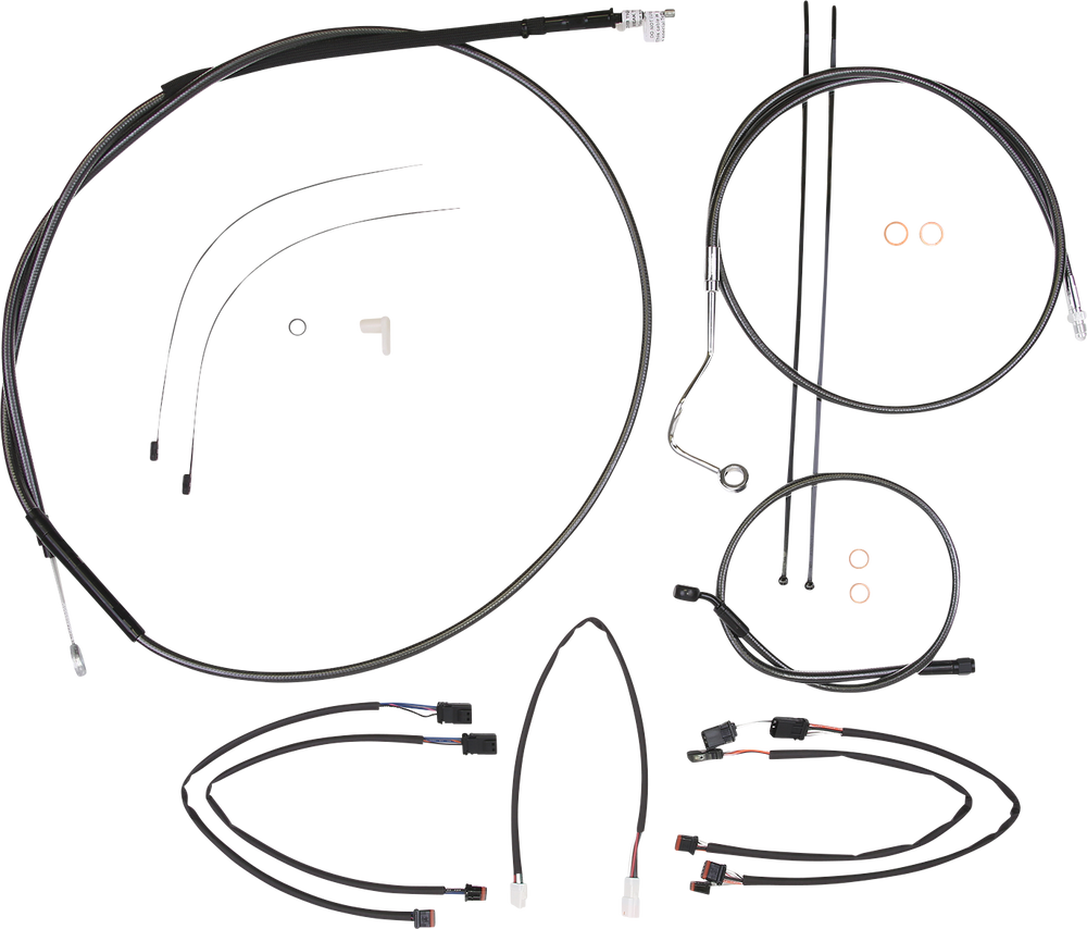 - Kit includes throttle and idle cables of throttle-by-wire extensions, clutch cable or hydraulic clutch line, brake lines, copper crush washers, hardware, and any necessary switch wiring of turn signal extension