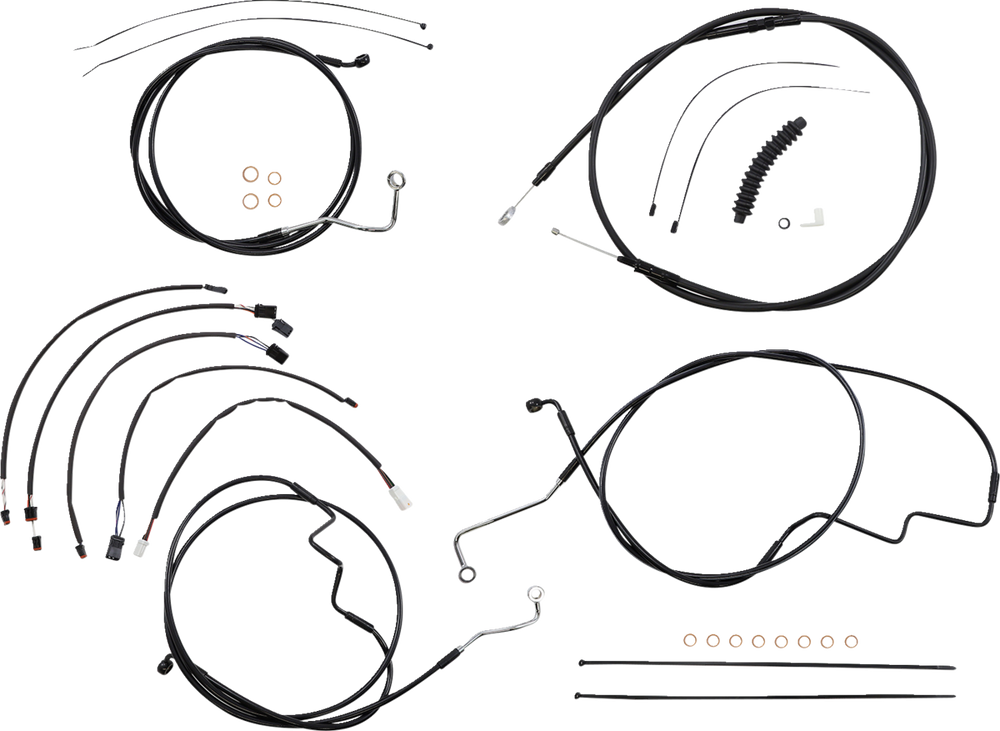 - Kit includes throttle and idle cables or throttle-by-wire extensions, clutch cable or XR hydraulic clutch line, XR brake lines, copper crush washers, hardware, turn signal and switch wiring extensions
