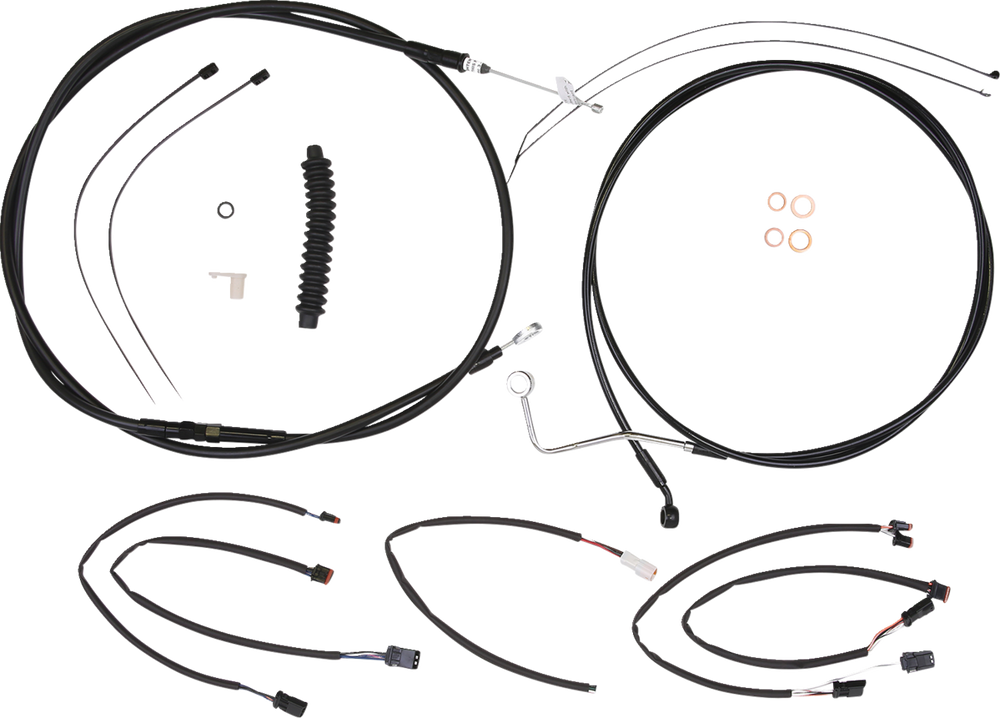 - Kit includes throttle and idle cables or throttle-by-wire extensions, clutch cable or XR hydraulic clutch line, XR brake lines, copper crush washers, hardware, turn signal and switch wiring extensions