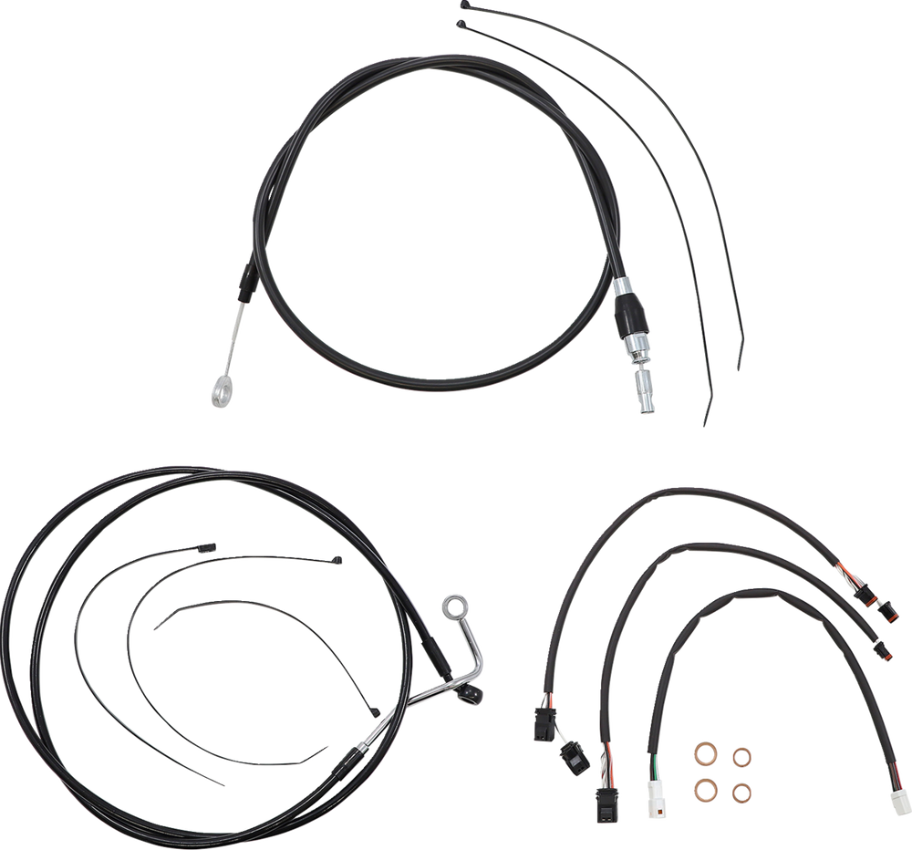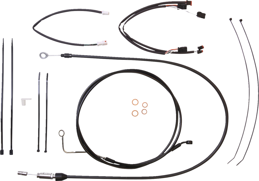 - Kit includes throttle and idle cables or throttle-by-wire extensions, clutch cable or XR hydraulic clutch line, XR brake lines, copper crush washers, hardware, turn signal and switch wiring extensions