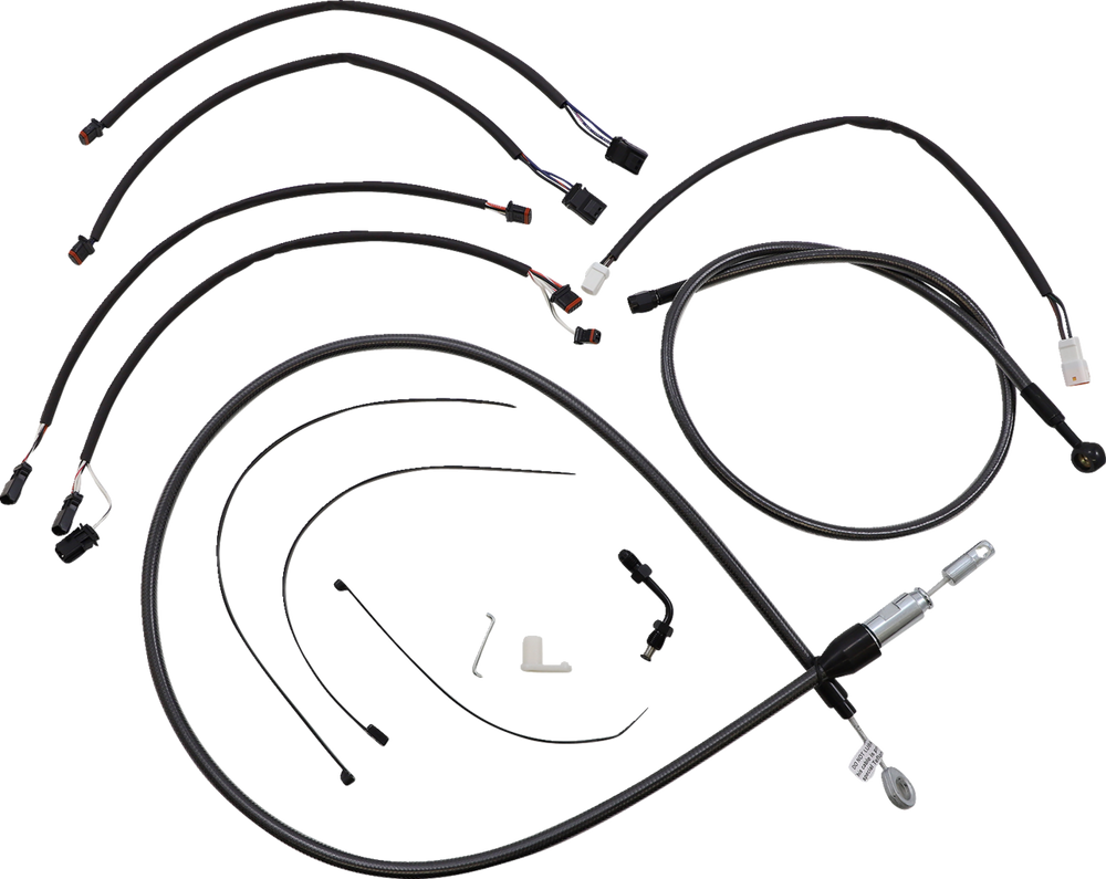- Kit includes throttle and idle cables of throttle-by-wire extensions, clutch cable or hydraulic clutch line, brake lines, copper crush washers, hardware, and any necessary switch wiring of turn signal extension