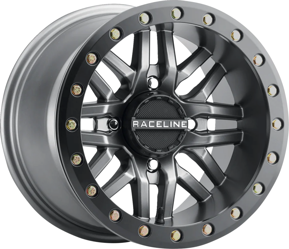 RACELINE WHEELS Wheel - Ryno - Beadlock - Front/Rear - Gun Metal Gray/with Black Ring - 14x7 - 4/137 - 5+2 A91G-47037-52