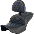 SADDLEMEN RoadSofa™ Seat - with Backrest - Lattice Stitch - Blue Stitch - FLTR/FLHX '23-'24 823-07-182B1