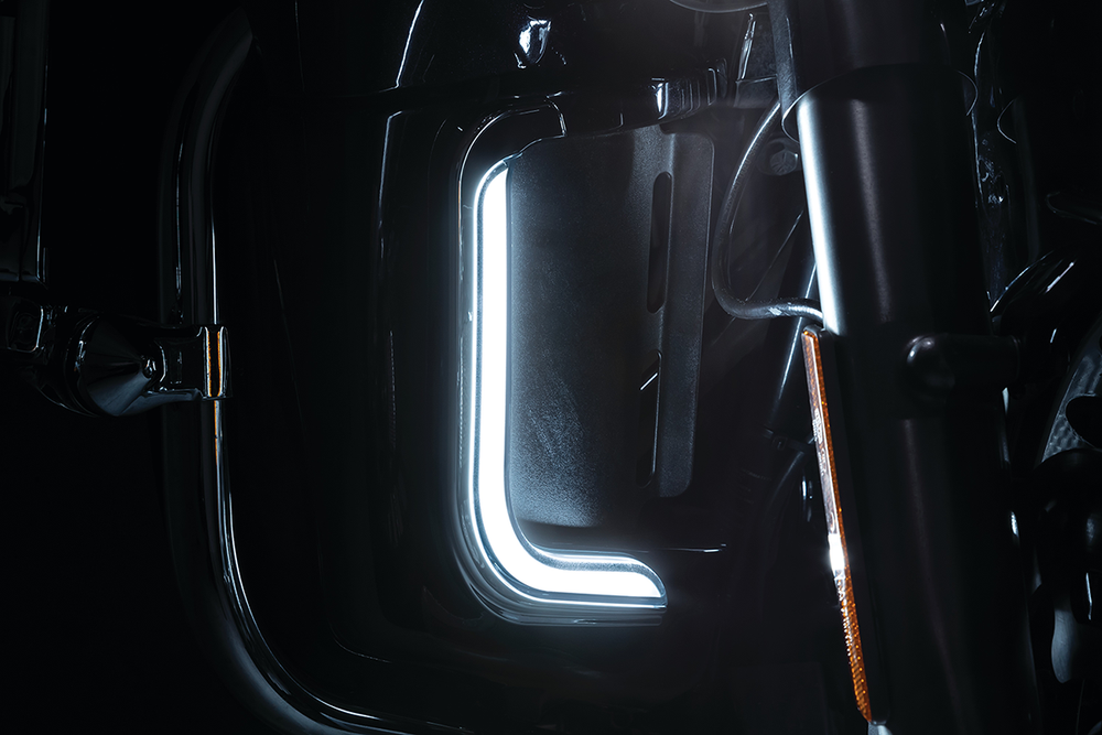 - Intense, fully diffused L.E.D. lighting with full-time white running lights and amber switchback turn signals when activated