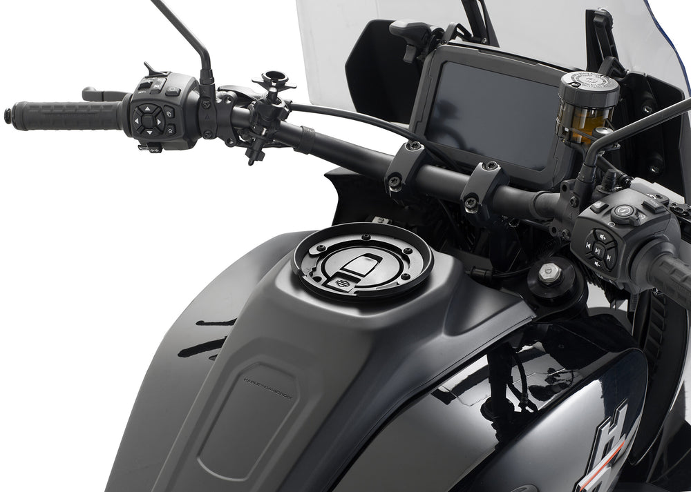 The TANKLOCK system now offers the ultimate tank bag securing system alleviating the concerns of magnetic and strap down tank bags being applied to your fuel tank. The TANKLOCK bag when combined with the appropriate make/model mounting hardware (which is a tank ring) latches directly to the fuel filler housing quickly and efficiently. Most of the TANKLOCK bags lower mechanism can be adjusted forward and backwards to enable the TANKLOCK bag to mount easily and conveniently to most motorcycle models.