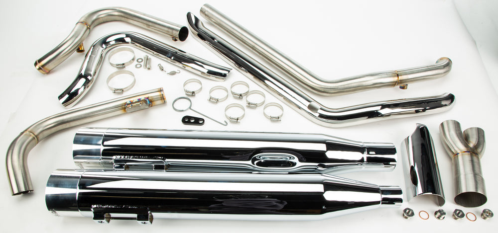 Designed to deliver maximum horsepower, torque and superior sound, the TBR Touring 2-1 w/ghost pipe now has the looks to match the attitude. The race inspired stainless steel headers shave pounds off the competition and are designed to ensure a long lasting, weather-resistant, amazing sounding exhaust. As always our headers are fabricated to accommodate both stock and 18mm O2 sensors and are finished with color matched heat shields. Headers from this system flow exhaust into our spring retained collector then into our popular 4â Touring muffler which now feature our famous spiral perforated core to deliver an unparalleled sound upon exit. We didnât stop there, we now have added a ghost pipe to the opposing side which utilizes the OEM heatshield and gives the bike the style and balance to match the performance.