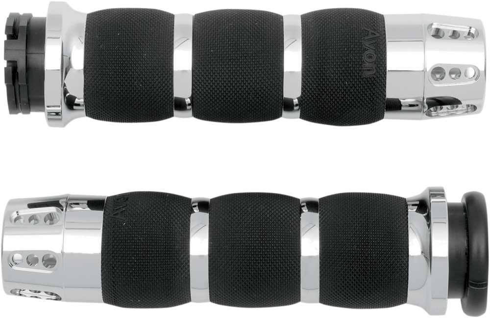 - Feature billet end caps and rings with ergonomic AVON seamless rubber grip technology