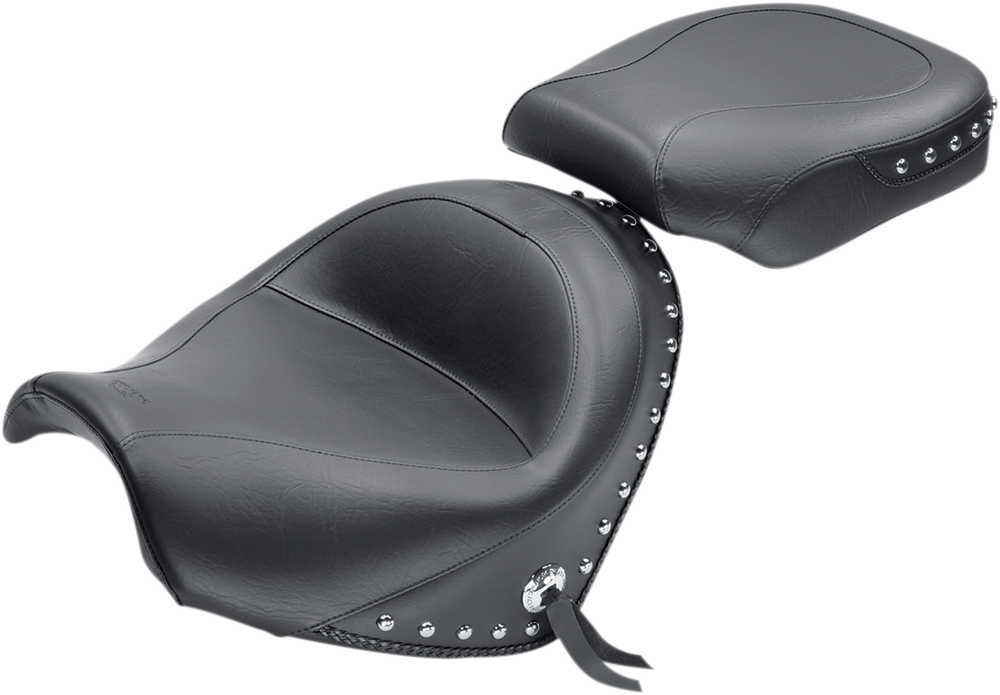 MUSTANG Seat - Wide - Touring - Without Backrest - Two-Piece - Chrome Studded - Black w/Conchos - Suzuki 76060
